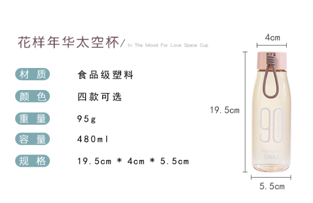 產品特點:食品級塑料,多種顏色選擇,480ML容量,便攜式提繩,手感舒適,細膩